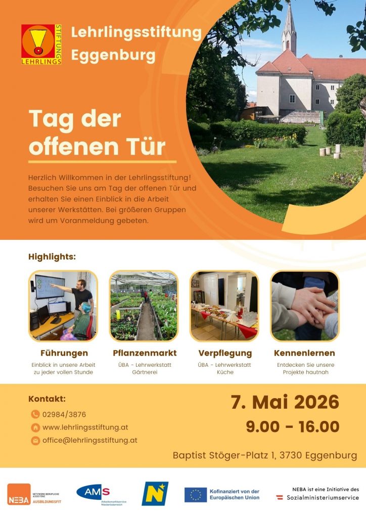 Durch die vielen erfolgreichen Abschlussprüfungen wurden wieder Plätze in unseren Lehrwerkstätten frei: In Büro, Gärtnerei, Informationstechnologie, Küche (Bild oben), sowie Malerei, Reinigungstechnik, Tischlerei und Konditorei (Bild unten). Bei Interesse ist eine Voranmeldung beim zuständigen AMS Voraussetzung. Informationen dazu auch unter: buero@lehrlingsstiftung.at oder telefonisch: Beate Beyer 06648199713.
