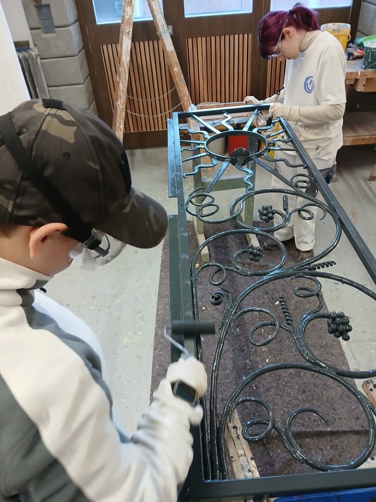 Immer wieder gibt es auch Projekte, die etwas anspruchsvoller für die Lehrlinge in den Überbetrieblichen Werkstätten sind. So sind unsere MalerInnen seit mehreren Tagen mit Lackierungsarbeiten an einem Schmiedeeisentor beschäftigt. Da sind Konzentration und sorgfältiges Arbeiten gefragt. Eine tolle Herausforderung für unsere Lehrlinge!